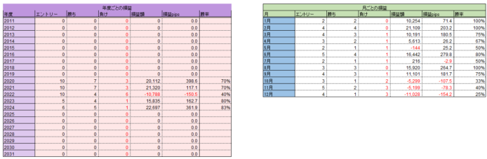 連敗数は3、ユーロ円も同様であったので、ポンド円、ドル円、キウイ円、カナダドル円と対円塚を検証した際に気にかけ、時期についても同じようなことがないか調べる。
