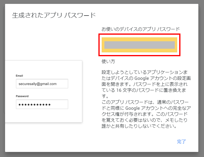 生成されたアプリパスワードが表示されます。