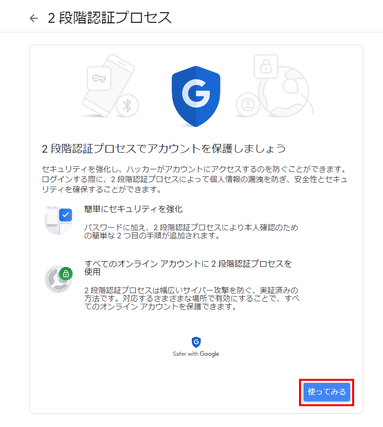 2Googleアカウントの2段階認証をオンにする
