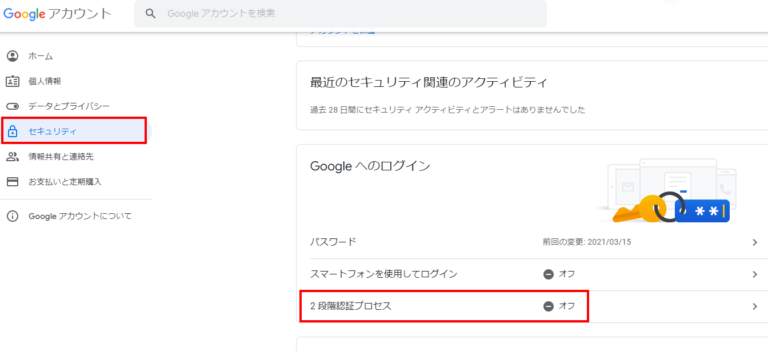 2. Googleアカウントの2段階認証をオンにする