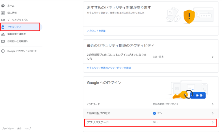 [セキュリティ]-[アプリパスワード]を選択します。
