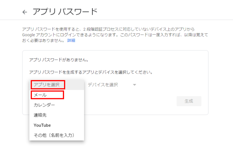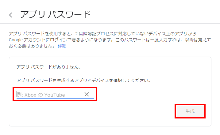 3.Googleアカウントのアプリパスワードを生成する